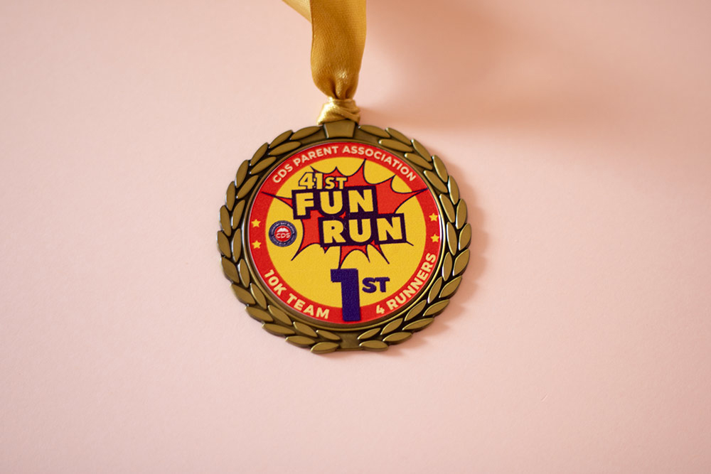 La medalla cuenta con un adhesivo impreso full color personalizado, colocado en la parte frontal, con un diámetro de impresión de 4.8 cm, lo que permite incluir logotipos, ilustraciones, textos o diseños gráficos con excelente definición y color. El acabado impreso aporta un alto impacto visual y mantiene la fidelidad del diseño original.